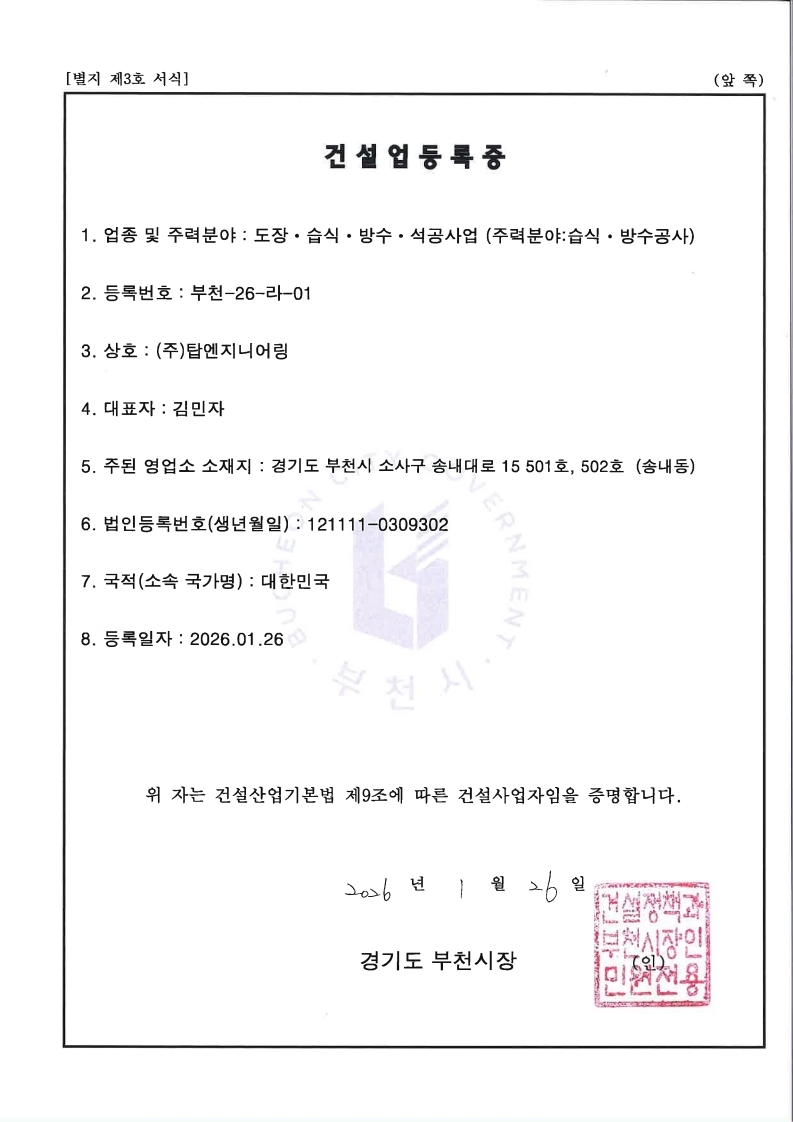건설업등록증(습식)